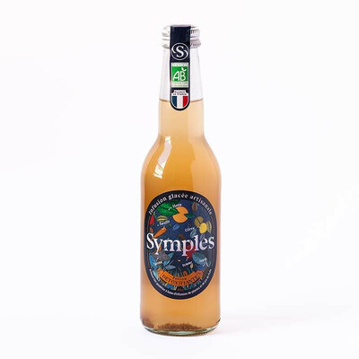 - Infusion de plantes bio (eau, verveine, lavande, camomille), sucre issu de fruit, jus de cerise, jus de cassis, jus de bluet.