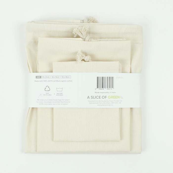 Contenu du mix de 3 sacs à vrac en coton bio de A Slice of Green