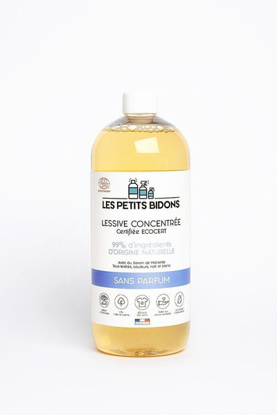 Les lessives et tous les autres produits Les Petits Bidons sont fabriqués en France, pour une empreinte carbone plus raisonnable. Par ailleurs, la marque a adopté une vision globale de l’impact environnemental de ses produits. Ainsi, non seulement elle privilégie les ingrédients naturels pour ses formules, mais elle propose également un emballage écoresponsable, soit en plastique recyclé et recyclable, soit en verre consigné pour la région parisienne.