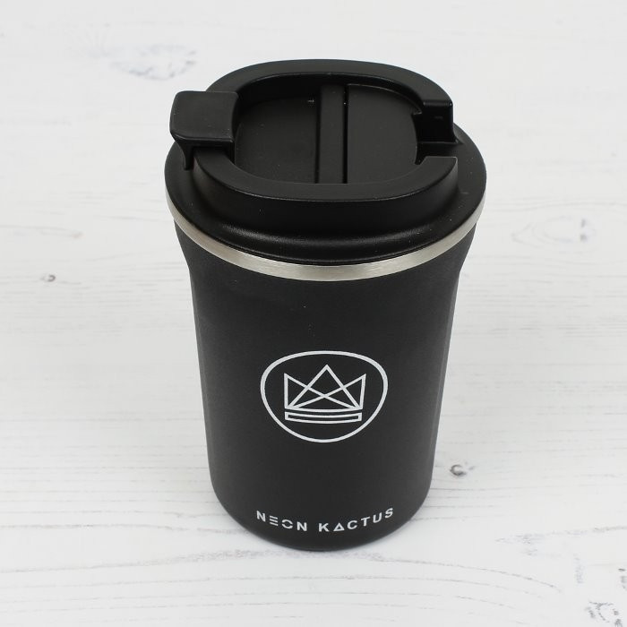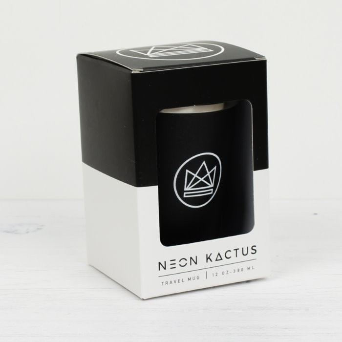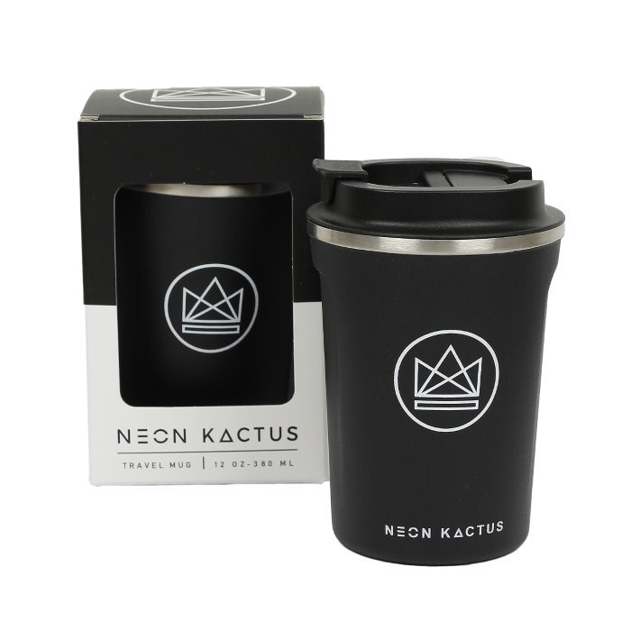 Ce mug noir est conçu en acier inoxydable de haute qualité avec un couvercle étanche et refermable garanti sans BPA (Bisphénol A). Grâce à son isolation thermique à double paroi sous vide, ce magnifique mug de voyage gardera votre boisson préférée à la température idéale et vous permettra de la déguster sans avoir un arrière-goût métallique. Robuste, léger et durable, le mug de Neon Kactus est très agréable au toucher et sa forme compacte assure une bonne prise en main.