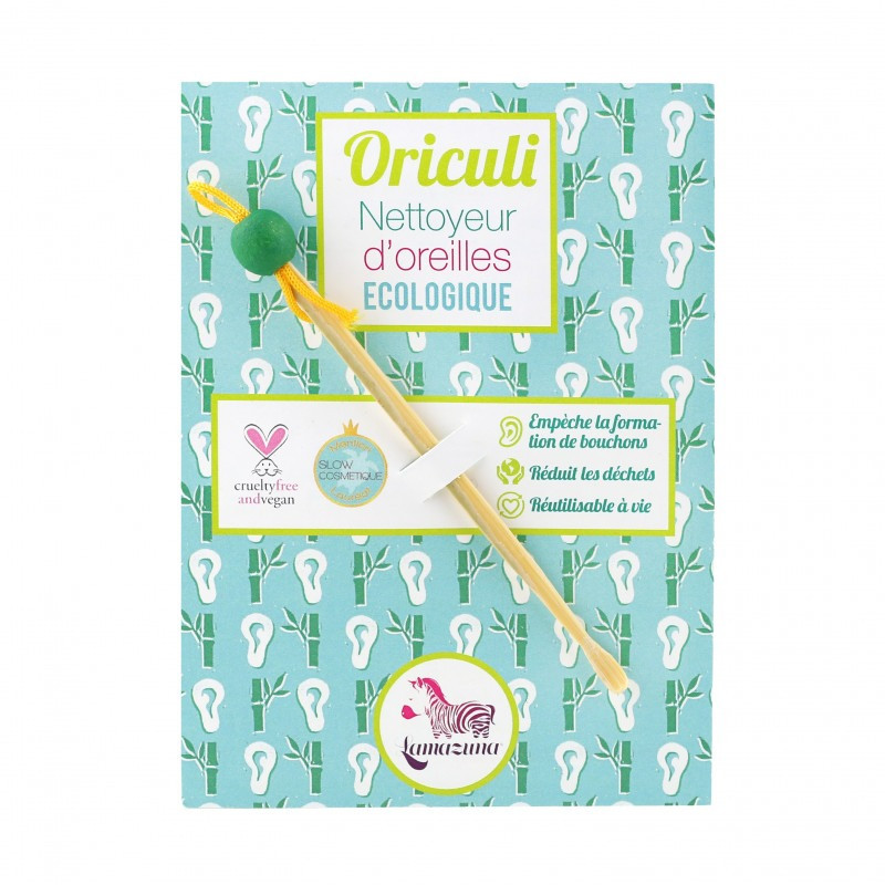 L’oriculi ou cure-oreille est une tige en bambou de 10 cm. À l’une des extrémités, on trouve une perle de couleur qui permet de distinguer son oriculi de celui des autres membres de la famille. L’autre extrémité est légèrement incurvée pour permettre le nettoyage de l’entrée du conduit auditif. Cet objet est fabriqué sur le modèle des cure-oreilles japonais, appelés « mimikaki ». La majorité des Japonais utilisent ces petits bâtonnets, qui se sont développés à partir du XIXe siècle.
