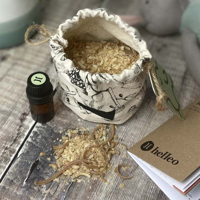- 5 ml de mélange d'huiles essentielles (Lavande, Bergamote, Citron, Géranium, Encens, Bois de Cèdre)