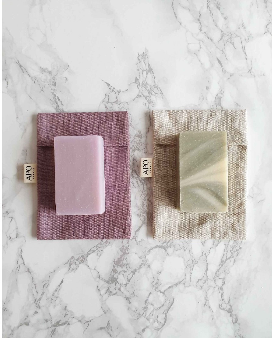 Les caractéristiques de la pochette à savon couleur figue en lin enduit