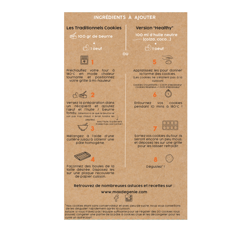 Valeurs nutritionnelles (Pour 1 cookie de 50 g**) :