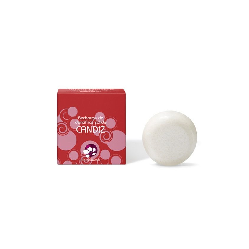 Recharge dentifrice vegan aux fruits Candiz de 10g. Dentifrice solide et artisanal fabriqué en France. Adapté pour les jeunes enfants (premières dents).