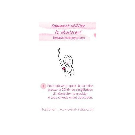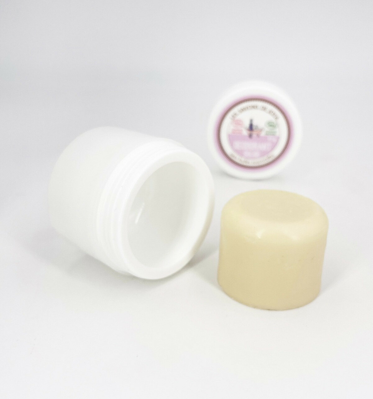 Composition : Huile végétale de noix de coco bio, Beurre végétal de karité, Cire de carnauba bio, Bicarbonate de soude, Amidon de maïs bio, Glyceryl Stearate, Vitamine E (Tocopherols mixed, helianthus annuus seed oil).