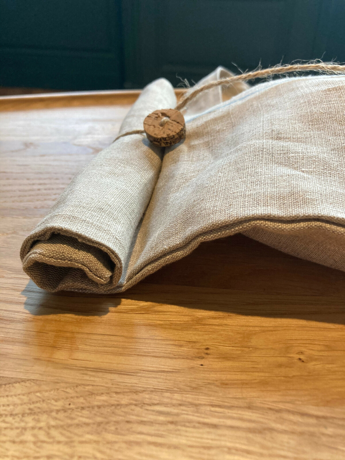 Ce sac roll top se ferme grâce à un bouton en liège recyclé. Les bouchons de liège sont récupérés auprès des cavistes de Caen proposant du vin naturel.