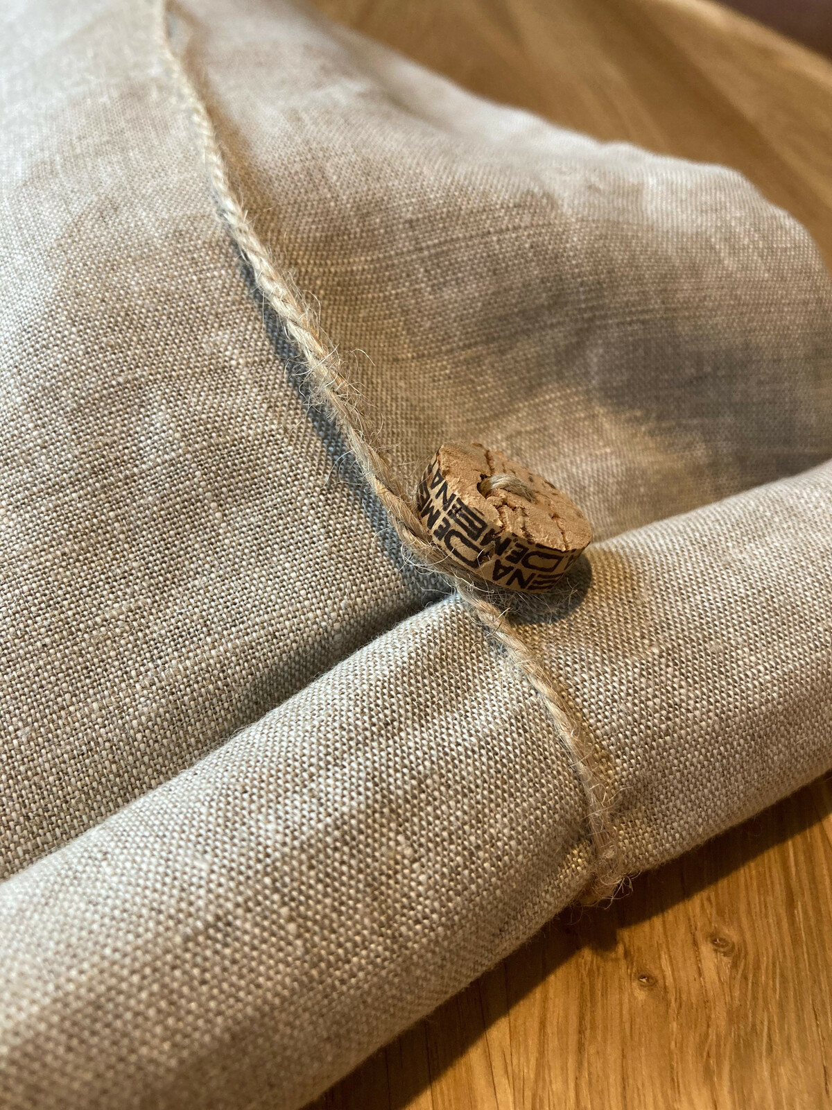 Le sac à baguette est fabriqué en lin français cultivé en Normandie, puis filé en Alsace. Il a été fonctionné à la main en Normandie à Caen.