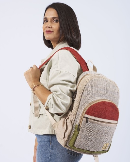 Ce sac à dos en chanvre biologique est fait pour durer. Dans le compartiment principal, transportez vos affaires de sport, de classe, ou votre ordinateur portable pour travailler. Ce sac éthique et durable est confectionné au Népal.