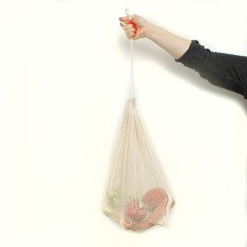 Le sac à vrac maille XL fruits et légumes A Slice of Green n’a pas fini de se rendre utile : au marché, chez le primeur ou en grande surface, il sait se rendre indispensable. Même à la maison, le sac en maille de coton biologique peut avoir de multiples usages. Contenant pour ranger des accessoires de cuisine, ou bien organiser votre réfrigérateur : vous ne pourrez bientôt plus vous en passer.