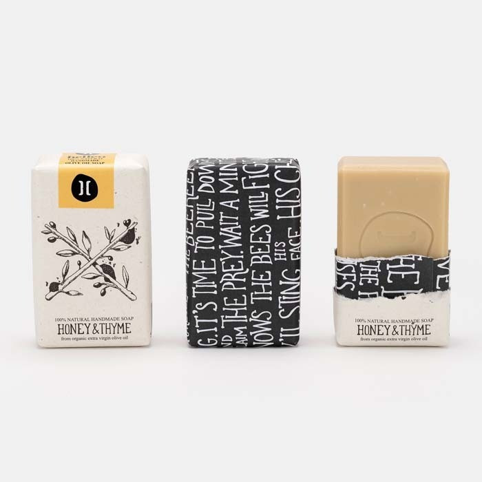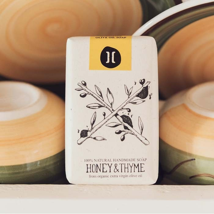 Ce savon naturel fait à la main est hautement hydratant et idéal pour les peaux et les cheveux secs. Son mélange d’huiles essentielles apaise. Le thym apporte ses propriétés antiseptiques, astringentes et antimicrobiennes. Et le miel ses vertus revitalisantes et hydratantes.