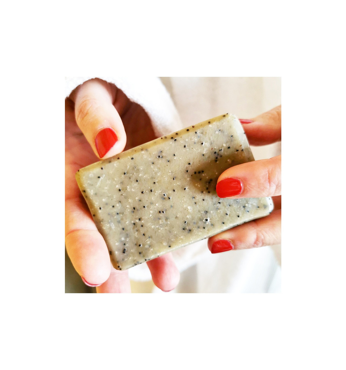 Les points forts du savon surgras exfoliant à la menthe et au pavot