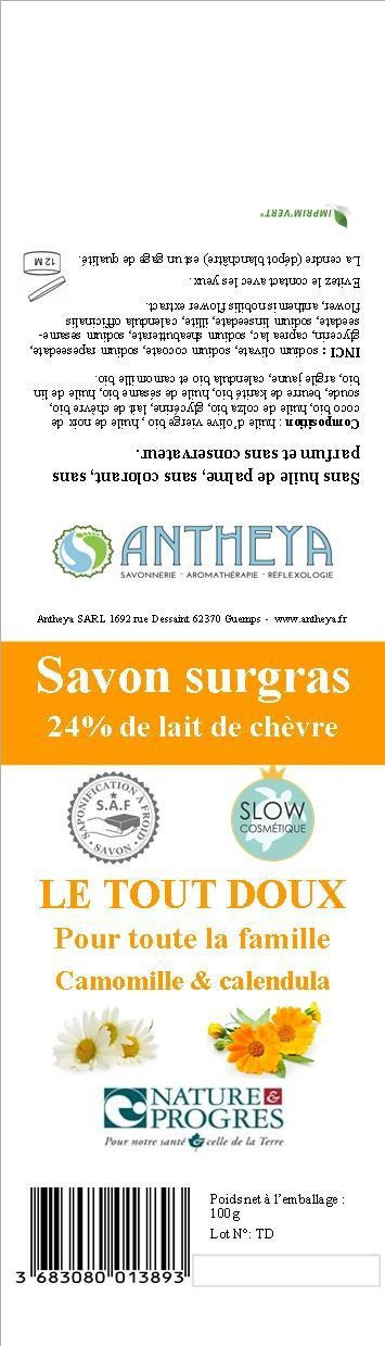- Allergènes : sodium olivate*, sodium cocoate*, sodium rapeseedate*, glycerin, aqua, sodium sheabutterate*, sodium sesameseedate*, sodium, linseedate*, illite, calendula officinalis flower*, anthemis nobilis flower extract*.