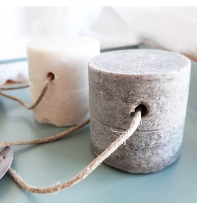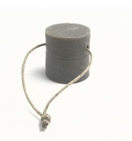 Savon ménager à base d’huile de coco bio, d’huile de lin bio, de terre de Sommières, de cendres de bois, et d’huile essentielle de Tea Tree.
