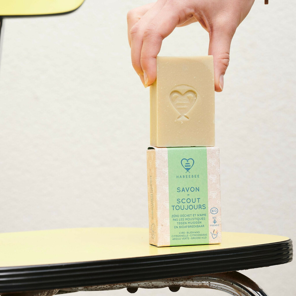 Savon solide "Scout Toujours" anti-moustique savon solide Habeebee Ce savon rend la peau douce, hydratée et protégée pendant les chaudes nuits d'été. Cire d'abeille, citronnelle, et argile verte 7,50 € Plus que 6 en stock ...