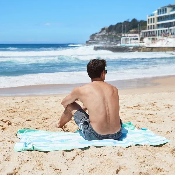 - Crochet élastique pour suspendre la serviette et la laisser sécher