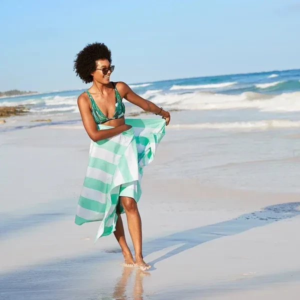 - Crochet élastique pour suspendre la serviette et la laisser sécher