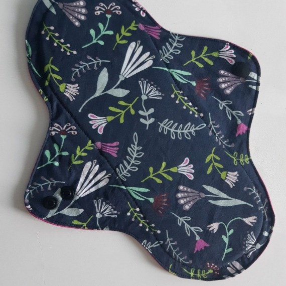 Serviette hygiénique en coton bio lavable Fleurs Printanières - Maxi - 26,8 cm