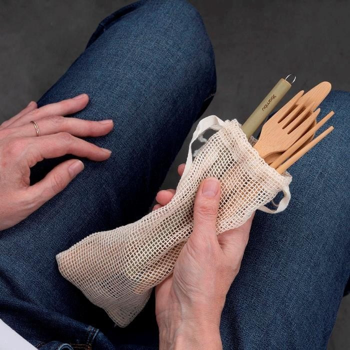 Set de couverts en bambou couvert repas Bambu Le set de couvert en bambou pourra vous accompagner dans vos voyages avec son filet pratique. 25,00 € Plus que 7 en stock Un set de couverts en bambou contenant : fourchette, couteau, cuillère mini couvert fourchette-cuillère paire de baguettes paille et brosse