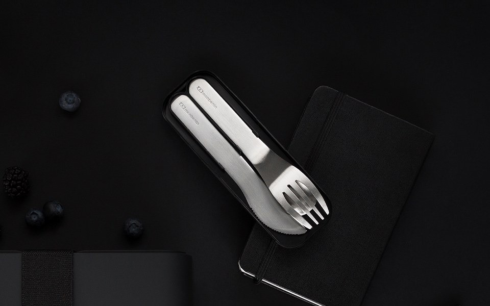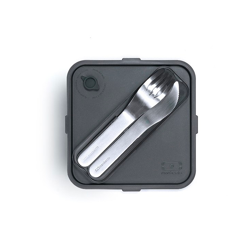 N’oubliez pas votre déjeuner avant de partir au travail, mais pensez aussi à glisser dans votre sac à lunch votre set de couverts en acier inoxydable, dont le socle s’adapte parfaitement aux boîtes à repas MB Square et MB Original de la marque monbento.