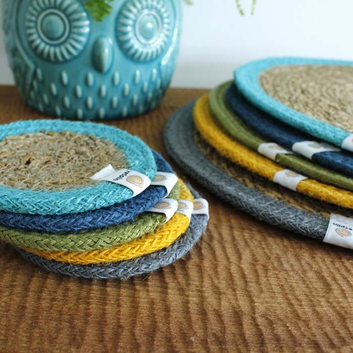 À l’heure de dresser la table et de servir le déjeuner à vos convives, déposez sous chaque assiette un set de table en jonc de mer et jute naturelle.