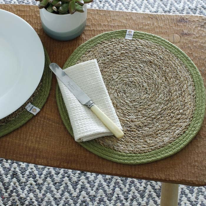 Protégez le bois de votre table et placez sous chaque assiette un set de table élégant et naturel. Le jonc de mer et la jute sont des matériaux naturels et intemporels qui s’adapteront à toutes les décos.