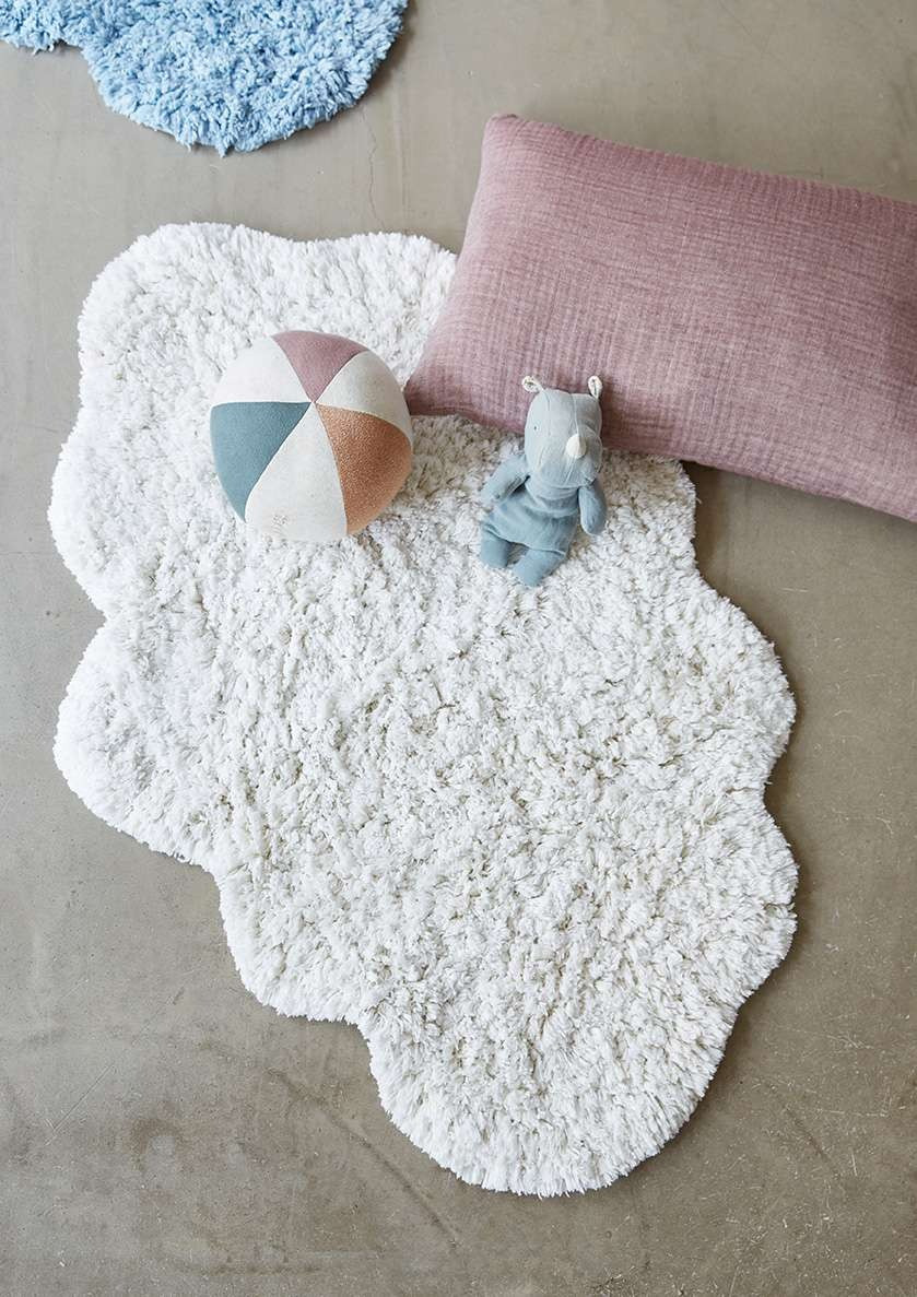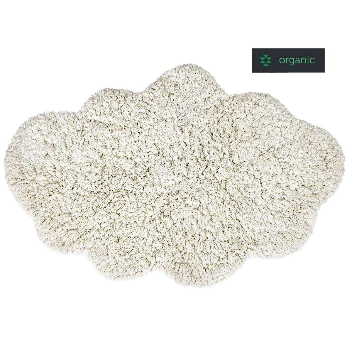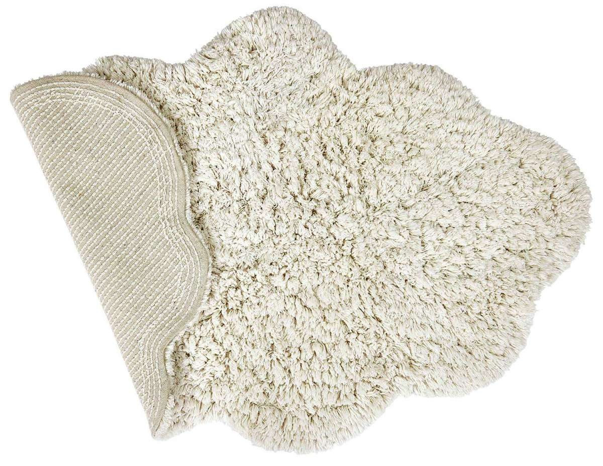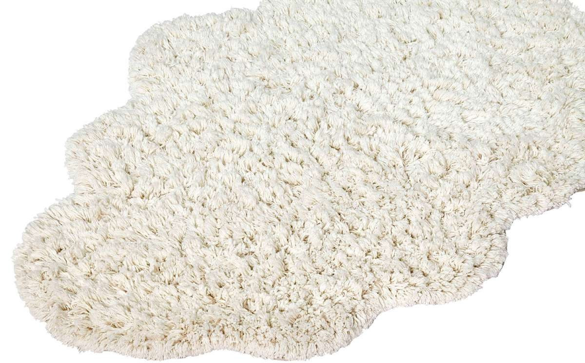 Tapis au format nuage blanc, en coton bio. Ses fibres à poils longs, vous donne l'impression de marcher sur des nuages.