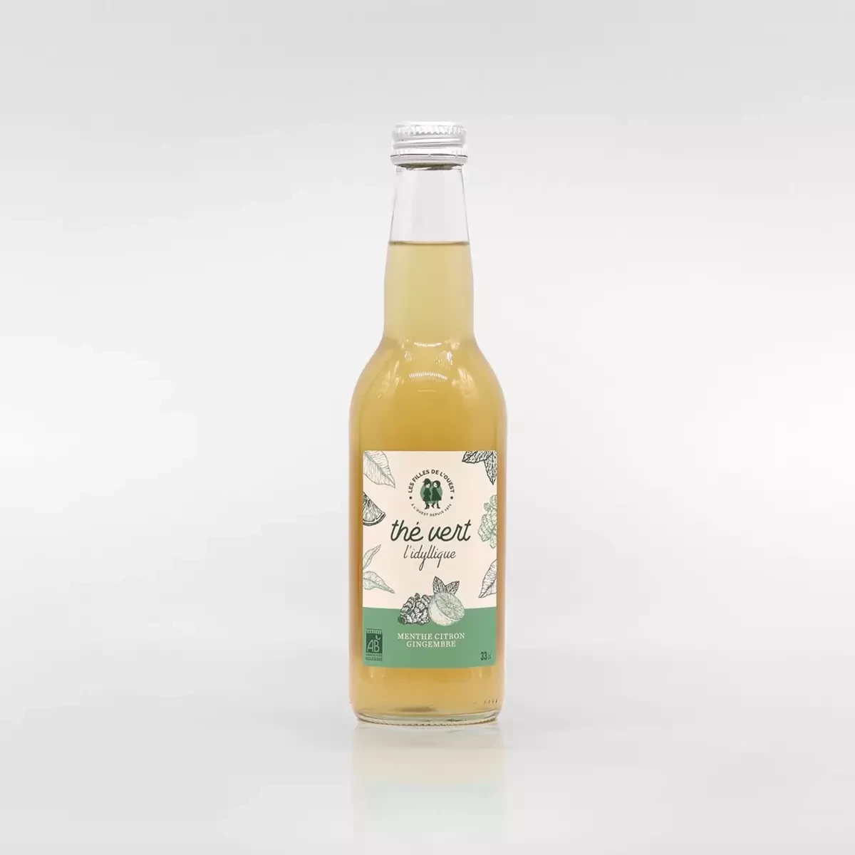 - Infusion de thé vert et menthe douce, jus de citron, sirop d'agave