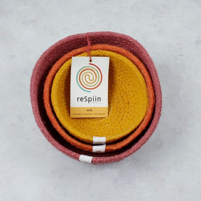 Entièrement tissées à la main, ces corbeilles sont en fibres de jute recyclées. Vous pouvez les utiliser pour présenter des aliments secs, comme du pain, des noix, ou des fruits. Sans colorants azoïques elles sont adaptées au contact alimentaire.