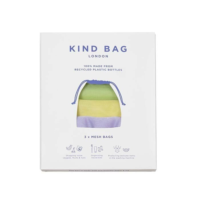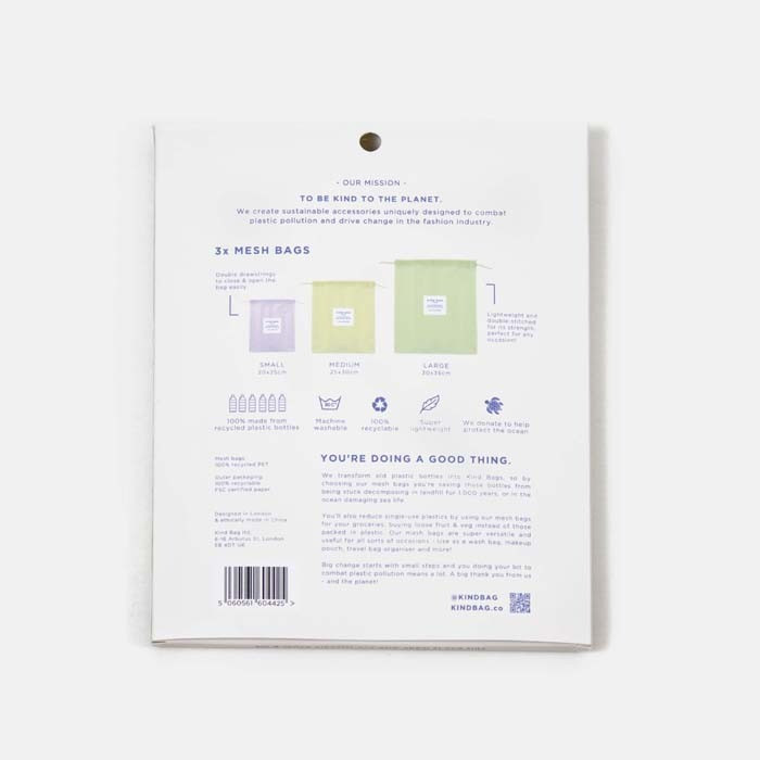 Réalisés à partir de bouteilles recyclées, ces 3 sacs de tailles et couleurs différentes transportent aussi bien les fruits et légumes que vos chaussettes ou vos produits d'hygiène et de beauté. Il est aussi utilisable en machine, pour laver et protéger vos vêtements fragiles.