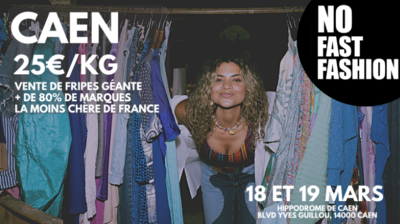 La No Fast Fashion, une friperie éphémère géante, sera présente à Caen (Calvados) les samedi 18 et dimanche 19 mars 2023 à l'hippodrome de la Prairie (boulevard Yves Guillou), avec plus de 6 tonnes de vêtements de marque disponibles.